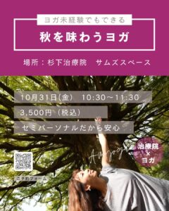 今月のヨガは、秋を味わう。それは心地の良い季節を、なんとなく過ごすのではなく、名残惜しむのでもなく、存分に身体とこころに呼吸を満たし、秋を味わってみましょう。豊かな時間を過ごすと、だんだん内側が満たされていきます。