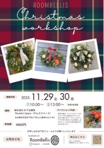 RoomBellisのクリスマスリースWS今回は土日の2日間開催です🎵