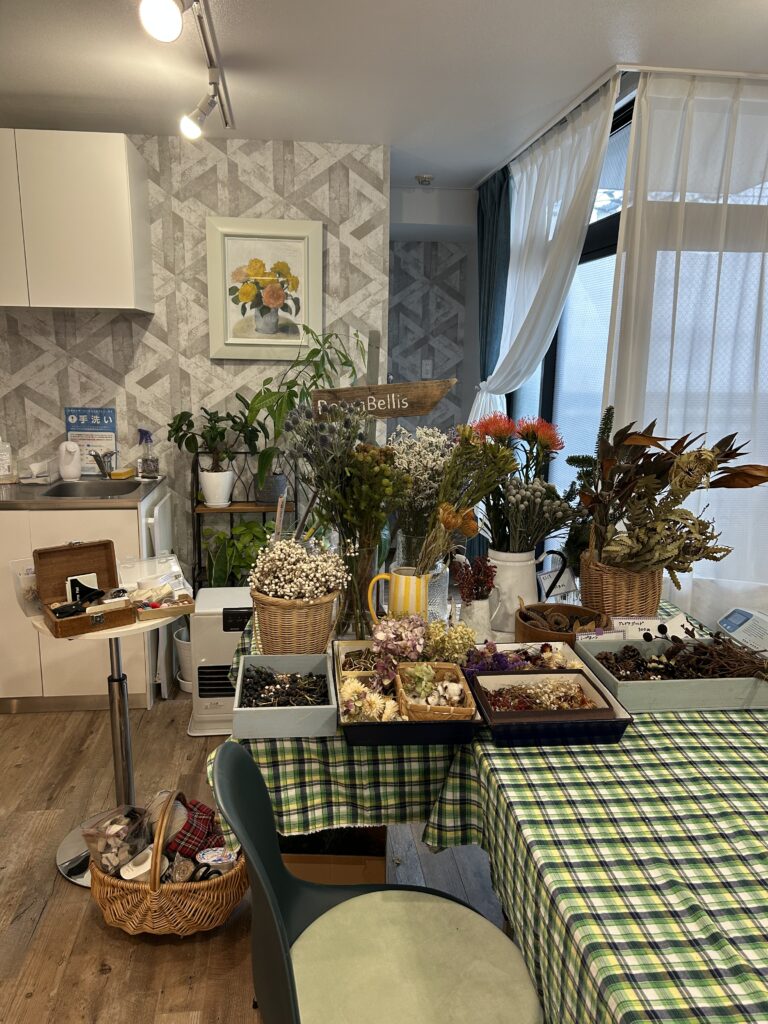 様々な花材の中から各自、自由に選ぶので自分オリジナルリースが作れます♡
